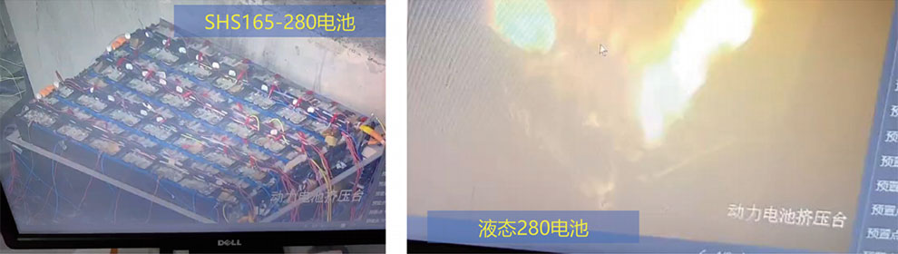 ◆ SHS165 -280電芯組成1P52S模組分別進(jìn)行180A過充測(cè)試/280A過充測(cè)試,單體電芯未發(fā)生熱失控,模組未冒煙、未起火、未爆炸