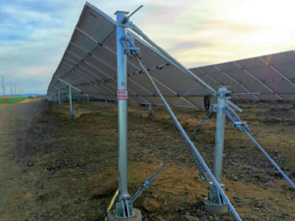 未來光伏建設(shè)用地越來越少,可利用土地空間的柔性支架勢在必行,而大功率光伏組件是柔性支架的最佳搭檔,雙方科形成更大跨度空間結(jié)構(gòu)技術(shù),支架由承重索、斜拉索或者鋼斜柱、鋼立柱和鋼梁組成,光伏板通過連接件與上、下柔性支撐索連接。相對于傳統(tǒng)光伏支架最大區(qū)別在于把固定支架的檁條變成了柔性支架的承重索,整個(gè)支架系統(tǒng)主要承受拉應(yīng)力或壓應(yīng)力,能夠最大程度地利用材料力學(xué)性能。